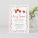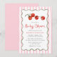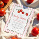 Celebrate your little tomato on the way with this charming baby girl baby shower invitation. Featuring hand-painted watercolor cherry tomatoes hanging on the vine, this fresh and playful design is perfect for garden baby showers, summer baby showers, and picnic-themed celebrations. Elegant script highlights the “Baby Shower” text, while a scalloped green frame and soft pink watercolor stripes create a sweet and feminine backdrop. A delightful choice for welcoming a baby girl, especially for parents who love nature, food-inspired themes, or a unique twist on a classic shower. Personalize this baby girl shower invitation with your event details to create a one-of-a-kind design.