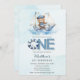 Invitación Cute Nautical Blue Boat Teddy Bear 1er cumpleaños
