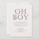 Crea la moderna y perfecta invitación de bebé de niños de color pastel y la invitación a la ducha de bebé con este moderno diseño de citas "Oh Boy", en una tipografía con letras de mano súper dulce en azul moderno. Diseñador de contactos para hacer coincidir productos y variaciones de diseño. Copyright Elegant Invita, todos los derechos reservados.