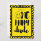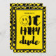 Invitación divertida y fresca de primer cumpleañosEsta invitación de primer cumpleaños capta toda la emoción y alegría del día especial de tu pequeño tipo. Con un borde de tablero de ajedrez y un brillante guarnecido amarillo, el diseño de "One Happy Dude" presenta una emoji feliz en lugar de la O, añadiendo un toque lúdico. El nombre de tu pequeña está por encima de la emoji para esa conexión personal. La parte trasera incluye detalles de fiestas de personalizable, y una llamada a la acción anima a los invitados a marcar sus calendarios para un día de celebración. ¡Gracias por su interés y esperamos que disfruten de este diseño!