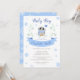 Baby boy winter baby shower invitation. Design features a cute illustrated owl with blue scarf along with blue snowflakes and winter florals.