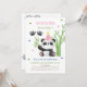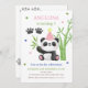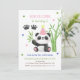 Cute baby panda kids birthday invitation featuring an adorable panda wearing party hat with a panda footprint, bamboo and stars at the background.