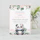 Invitación Cute Panda Chica Greenery Flor Rosa Baby Shower