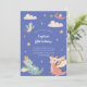 Invitación de cumpleaños en tonos pastel con juguetones dragones, estrellas y ilustraciones en la nube combinados con una tipografía divertida y elegante con diferentes colores. Puede encontrar más elementos coincidentes de esta colección en mi tienda.