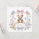 Announce your baby shower with a touch of playful elegance using this charming teddy bear themed invitation. The centerpiece is a delightful teddy bear adorned with a sweet blue bow, surrounded by a beautiful arrangement of pastel flowers and delicate greenery. The elegant script and soft color palette create a sophisticated yet heartwarming feel, perfect for celebrating mom to be's special day. This card is sure to set a joyful tone for your baby shower fun.