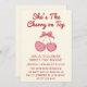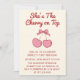 Invitación Cute Pink Bow Cherry on Top First Birthday