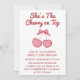Invitación Cute Pink Bow Cherry on Top First Birthday