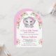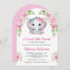 Invitación Cute Pink Bow Floral Elephant Baby Shower