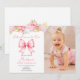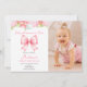 Invitación Cute Pink Bow Girl First Birthday Photo Invitation