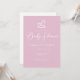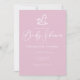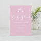 Esta encantadora ducha de bebé rosa presenta un adorable juguete de mecedoras sobre su moderna tipografía minimalista blanca. Hermosa ducha moderna invita a una madre que espera un bebé.