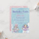 Esta divertida y festiva invitación a la fiesta de cumpleaños de los personalizados incluye un tema de invierno. El fondo presenta la caída de la nieve con las colinas de nieve formándose en las esquinas inferiores. Dos preciosas muñecas chicas con el pelo colorido están paradas debajo de los copos de nieve, sosteniendo varios artículos de vacaciones o Navidades. El chica de la izquierda sostiene una caña de caramelo y una piruleta y el de la derecha sostiene varios adornos. Purpurina falso brilla acentuando las muñecas y la nieve.