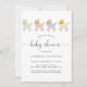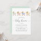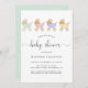 Esta encantadora invitación minimalista a la ducha de bebé, neutra en género, incluye un desfile de tonos verde menta pastel, azul, rosa, amarillo y dorado retro bebebederos y una "ducha de bebé" escrita en un guión elegante.