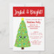 Invitaciones a fiestas Navidades, alegres y coloridas, que incluyen un alegre y brillante dibujo de un árbol de Navidad kawaii. En la parte trasera hay un caprichoso patrón de caramelos que les desea a sus invitados una feliz Navidad. Invitaciones para una fiesta infantil.