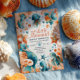 Disfrute de esta deliciosa invitación de cumpleaños a los niños Chicas de la vida marina en el océano. Con una adorable sirena rodeada de coloridas criaturas marinas, conchas marinas y detalles submarinos extragrandes, esta encantadora invitación es perfecta para cualquier fiesta de cumpleaños con temática oceánica de una niña. El alegre diseño pastel crea el tono para una celebración mágica bajo el mar. Personalizar con el nombre, edad y detalles del fiesta de su hijo para una invitación única que es tan especial como su gran día.