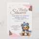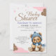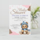 Featuring a sweet teddy bear holding pastel balloons, this soft and elegant design is perfect for a gender-neutral baby shower, welcoming both boys and girls.