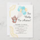Featuring a sweet teddy bear holding pastel balloons, this soft and elegant design is perfect for a gender-neutral baby shower, welcoming both boys and girls.