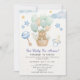 Featuring a sweet teddy bear holding pastel balloons, this soft and elegant design is perfect for a gender-neutral baby shower, welcoming both boys and girls.