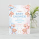 Invitación Cute Teddy Bear & Blue Pink Balloon Baby Shower