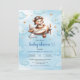 Invitación Cute Teddy Bear Pilot Blue Brown Baby Shower