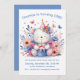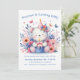 Envía a tus invitados este adorable oso de peluche gris claro plateado con una sonrisa como Kawaii, envuelto alrededor de su pastel de primer cumpleaños y una vela soltera iluminada mientras vististe a un gorra fiesta. Sentado frente a hermosos colores mudos de melocotón, flores azules y rosas, mariposas y corazones. Los colores y el diseño hacen que este género sea neutro para un niño o un chica. Y nuestras plantillas de personalizable facilitan su producción para todos sus huéspedes.