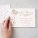 Bebé con flores rústicas de conejito fino en tonos dulces de verde salado, crema y rosa suave con puntos rústicos de polka en la espalda. Este diseño presenta un adorable conejo vintage flotando en un ramo de globos festivos con motivos de puntos de polka y flores suaves. Un florecimiento de flores botánicas complementa la tipografía rústica y deja mucho espacio para tus detalles personalizados. Perfecto para los niños con duchas para bebés, duchas para bebés chicas y duchas para bebés neutras en cuanto a género. Póngase en contacto con nosotros en cedarandstring@gmail.com si necesita ayuda con el diseño o productos de coincidencia.