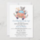Adorable drive by baby shower invitation featuring an adorable grey wolf, and a festive creamsicle-colored car. This invitation is perfect to celebrate the soon-to-be parents of a baby boy. (c) KaliValy
