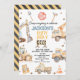 Curte Yellow Boys Construction Dirty 3 días Invitación al cumpleaños 3 días Invitación sucia al niño con varios vehículos de construcción, herramientas, letreros y más.