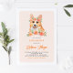 Invitación Cuto acuarela Corgi Peach Floral Baby Shower