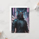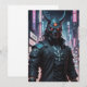 Esta intensa imagen retrata a un amenazante demonio samurai, adornado con un atuendo futurista, oscuro y una máscara con ojos y cuernos rojos brillantes. Ubicado en un ambiente urbano iluminado por neones, inspirado en la estética del ciberpunk, el personaje se encuentra entre numerosos signos y símbolos iluminados, lo que sugiere un paisaje urbano de alta tecnología y vibrante.