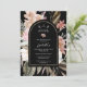 Invitación de fiesta de graduación de director de funeraria con educación universitaria D.E.P. en negro con fondo de flores funerarias. El texto también se puede cambiar para una fiesta de graduación de educación universitaria D.E.P.