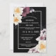 Un bonito ilustracion acuático con flores silvestres en tonos de canela polvorienta y flores de daffodil amarillo pálido de bonito, colocado sobre una cubierta negra bordeada por un borde blanco. Las flores florales tienen delicadas flores falsas de linea plateada a su alrededor y las aluviones de la espalda el mismo ambiente clásico lujoso y elegante. Siéntase libre de borrar o mover las plantillas y cambiar el tamaño y estilo de las fuentes si lo prefiere. Son ideales para pequeñas bodas íntimas en el jardín familiar; para fiestas de bodas y celebraciones de eventos en el campo de destino o para cumpleaños; compromiso y ocasiones especiales de aniversario.