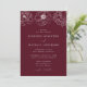 Elegantes invitaciones florales a bodas con un borde superior de delgadas flores blancas con un fondo burdeos. Personalice las invitaciones florales de bodas de Borgoña con sus nombres y detalles bodas en letras blancas con acentos caligráficos. Diseñado para coordinar con nuestra colección de bodas Dainty Floral.