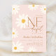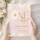 Daisy 1st birthday party invitation. Perfect for a little miss ONEderful theme birthday celebration. Cute girly design in muted blush pink. Features hand-drawn daisy flowers and trendy modern typography script font. Stylish, elegant first girls bday celebration with a touch of boho chic. Personalize with your own details. Printed Zazzle invitations and/or instant download digital printable template.