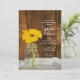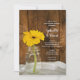 Invite a sus invitados a celebrar a la recién casada y al recién casado la mañana después de su ceremonia de matrimonio con la relajada y rústica Invitación de Brunch de Post Boda en el Campo con Margaritas Amarillas en Tarro de Mason. Esta invitación casual pero elegante para el Desayuno o Almuerzo Después de la Boda de estilo rancho personalizado presenta una encantadora fotografía floral de un frasco de conservas de vidrio lleno de una flor de margarita amarilla y un fondo de madera de granero marrón desgastado. Una inspiración perfecta o idea para una celebración de fiesta de granero informal. Disponible como invitación impresa para enviar por correo o como descarga digital para compartir fácilmente en línea.
