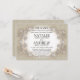 El estilo rústico y suave de la época de la burrega con la corona floral blanca que abarca este texto romántico estilo tipográfico para una invitación nupcial única. texto personalizar y tipos de letra para adaptarse a su propio estilo. Se imprimen todas las partes de estas invitaciones. No hay ninguna copia conectada a esta invitación impresa.