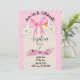 This adorable pink floral and bow invitation features white daisies with golden yellow centers and soft watercolor-style pink bows with a pastel pink background. This charming feminine aesthetic is perfect for a girly party. The daisy and bows create a playful cottagecore vibe that is both trendy and timeless. The sweetest modern invitation for a birthday girl.