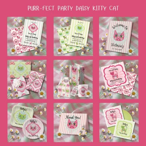 Invitación Daisy Kitty Face Fiesta de Cumpleaños perfecta