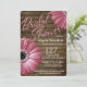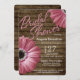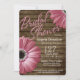 La alegre y colorida ducha de novios de madera de margarita invitan con madera rústica oscura de granero y margarita de Gerbera rosa profundo. El texto estilo guión manual agrega sólo un poco de capricho a esta absolutamente hermosa y divertida invitación a la ducha de novias.