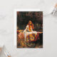Tarjeta con la pintura al óleo de John William Waterhouse The Lady of Shalott (1888). Una hermosa mujer con un vestido blanco escapa en un bote de su destino para ver todo el mundo a través de un espejo y tejer un tapiz de él, pero al ver al príncipe Lancelot, la maldición sigue a la Señora de Shalott hasta su muerte. Los colores otoñales brillantes pintan esta escena trágica. Un regalo impresionante para los entusiastas de la Arthuriana y los coleccionistas de pre-Raphaelita.
