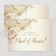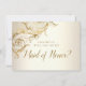 Pide a tu dama de honor que esté en tu boda con estilo con esta invitación personalizada de dama de honor dorada y marfil acentuada por un florecimiento vintage de damasco floral dorado falso sobre un fondo brillante. Diseñado por Susan Coffey.