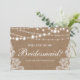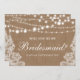 Tarjeta de Damas de Honor Luces de Arpillera para Boda Rústica