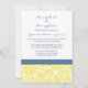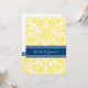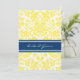 Tarjetas de la invitación de la recepción nupcial para la recepción separada en azules marinos oscuros elegantes y contemporáneos, modelo floral clásico elegante y elegante amarillo limón y blanco brillante del vintage del damasco. Modifique estas invitaciones para requisitos particulares con sus detalles del boda a invitar a sus huéspedes a su celebración después de un boda privado o del destino. Disponible en hacer juego los productos para todo su boda necesita.
