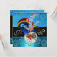 Elegante, con clase, genial y único diseño de monograma con un sombrero Elfic azul verde, búhos expresivos divertidos, tréboles de piedras preciosas rubí vibrante zafiro y flores damasco en azul aguamarina y verde teal. Fácil de personalizar con tus iniciales y texto propio como anuncio de fiesta de cumpleaños, boda, tarjetas de lugar, save-the-date, tarjetas de agradecimiento, despedidas de soltera, fiestas, fiestas de compromiso, o casi cualquier evento que desees! Modelado y renderizado nurbs muy precisos por Bulgan Lumini (c). Parte de la serie Hyper Talismans.