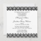 Esta invitación formal a la boda presenta un elegante diseño de damasco blanco y negro con un borde floral negro.