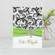 Invitación Damasco blanco y negro con la falsa cinta de la