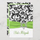Esta invitación blanco y negro elegante de Mitzvah del palo del damasco en el papel de lino tiene una verde lima IMPRESA EN la estrella de la cinta y de la plata de la broche de David. Si usted requiere cualesquiera otros artículos a juego, o los quisiera en otra combinación de color, enviar por correo electrónico por favor niteowlstudio@gmail.com con su petición.