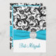 Invitación Damasco blanco y negro con RIBBON IMPRESO de Aqua