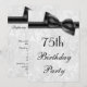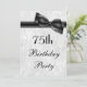 Elegantes invitaciones a la fiesta de cumpleaños número 75 de las mujeres. La fiesta de cumpleaños setenta y cinco años invita a la mujer. Hermoso fondo blanco de damasco con un bonito, elegante arco negro e imagen de cinta. Estas invitaciones glamorosas, modas y elegantes son bellamente sofisticadas y están decoradas/impresas en ambos lados.POR FAVOR, TEN EN CUENTA QUE Todas las invitaciones en Zazzle tienen imágenes impresas planas. Imágenes de bronce y cinta compradas de diseños digitales por elena. Si necesitas ayuda para personalizar tu invitación, por favor contacta conmigo a través de mi tienda y estaré encantado de ayudarte.