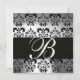 Invitación DAMASCO DE MONOGRAMA NEGRO Y BLANCO plata piedra l