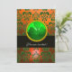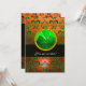 Invitación DAMASCO DE NARANJA VERDE CON TRÉBOL ,negro